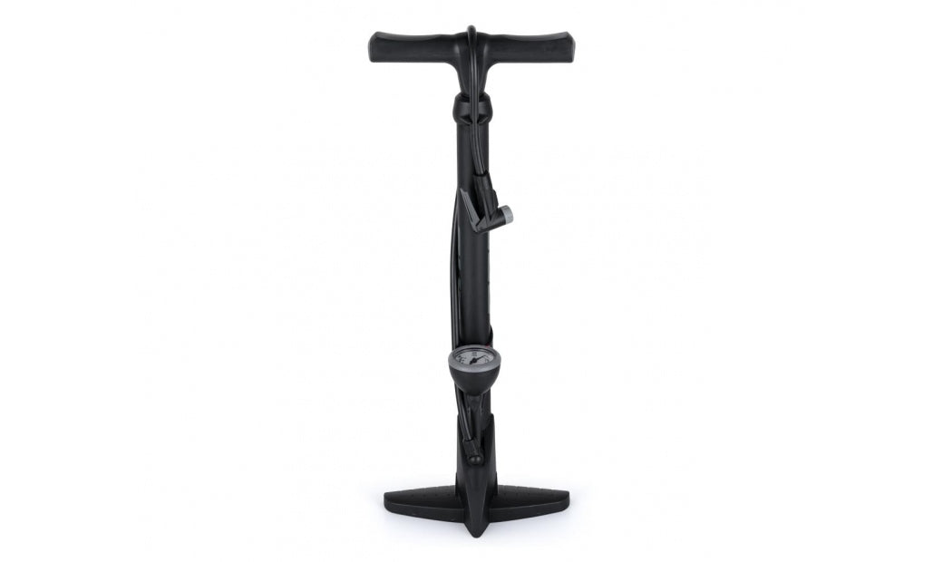 Storsäljaren One S.PUMP 40 är en prisvärd golvpump med en tydlig analog manometer (tryckmätare) som levererar generös luftvolym och pumpar upp din MTB eller landsvägscykel på ett par sekunder. Den har ett ergonomiskt handtag, en flexibel pumpslang och ett praktisk munstycke (Dual head) som passar till både Presta och Schrader ventiler.
